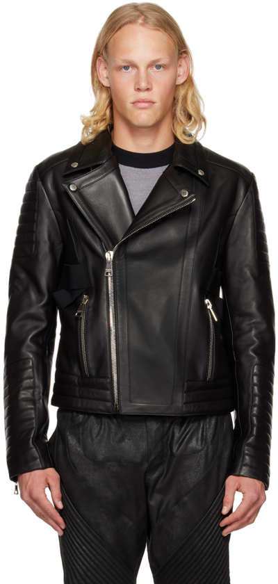 Black Padded Leather Biker Jacket