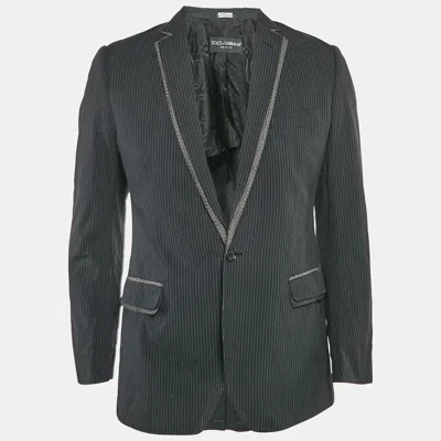 Pre-owned Black Stripe Cotton Single Breasted Blazer M