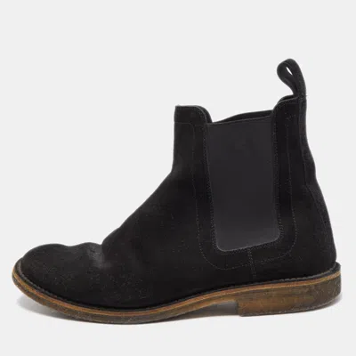 Pre-owned Black Suede Chelsea Ankle Boots Size 40