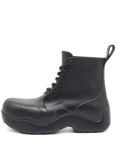 Pre-owned Black Rubber Lace Up Puddle Boots Size 41