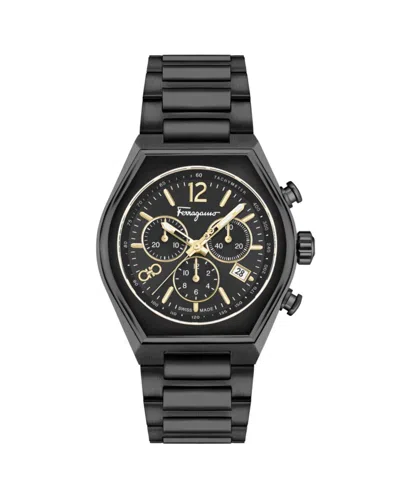 Hudson Yards Chronograph Automatic Black Dial Men's Watch 48811b In Black / Gold Tone / Yellow