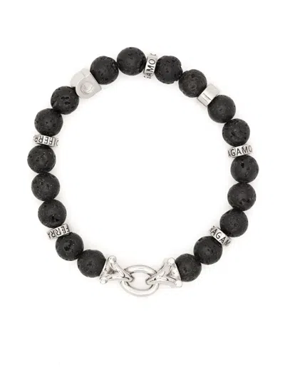 Mens Black Logo-plaque Saffiano-leather Bracelet