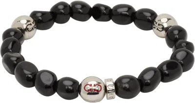 Dakota Mixed Semi Precious Beaded Stretch Bracelet In Jet/white
