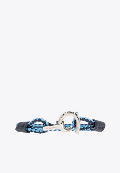 Gancini Two-tone Braided Leather Bracelet In Blue