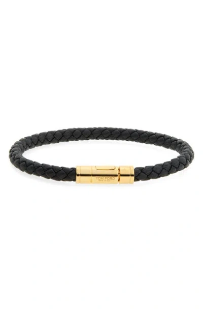 Tubular Clasp Braided Leather Bracelet In Black