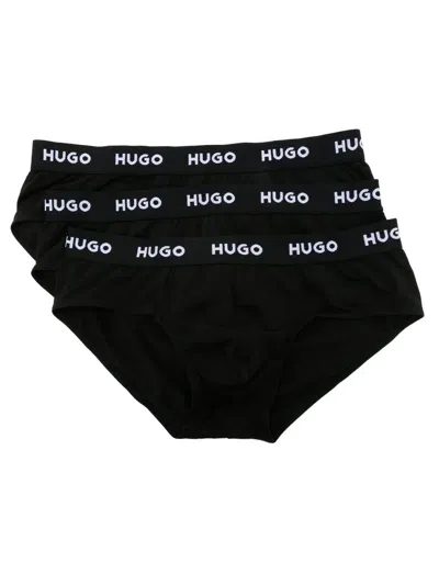 Set 3 Pairs Of Stretch Cotton Briefs With Logoed Elastic Ban In Black
