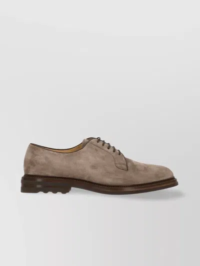 Suede Lace-up Brogues Stacked Heel In Neutral