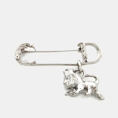 Pre-owned Silver Lion Head Charm Brooch