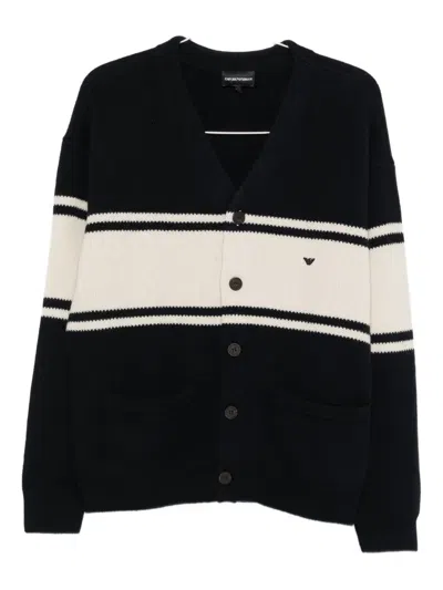 Textured Wool Cardigan With Embroidered Motif In Navy