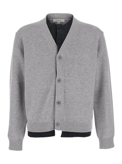 Grey Cardigan With Asymmetrical Design In Wool Man In Gray