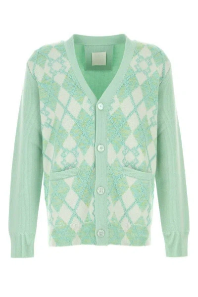 Cardigan Wool Blend Argyle Pattern In Green
