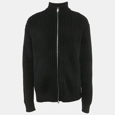 Pre-owned Black Rib Knit Zip-up Cardigan L