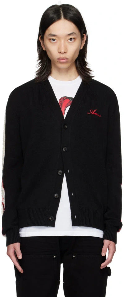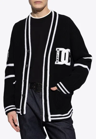 Black Cardigan With Bones Motif And Logo In Multicolor