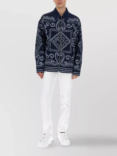 High Collar Zipped Cardigan In Blue
