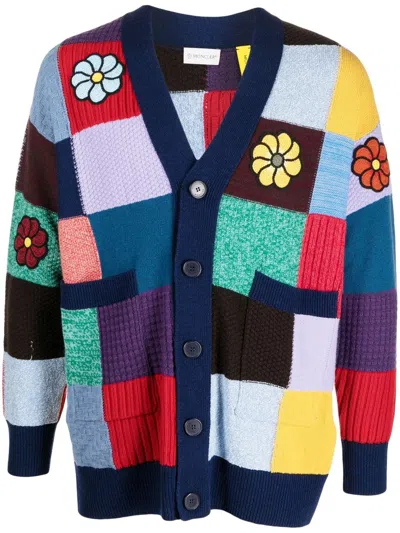 Men Embroidered Virgin Wool Cardigan In Green