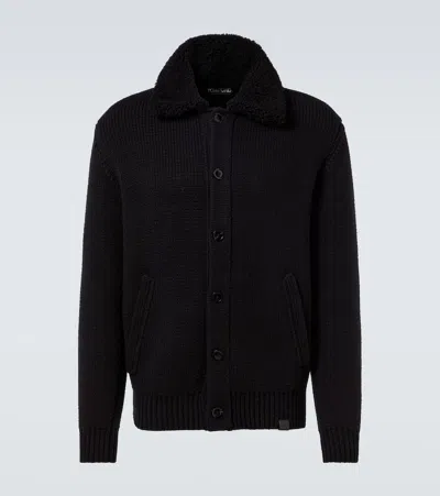 Shawl-collar Ribbed Wool Cardigan In Blue