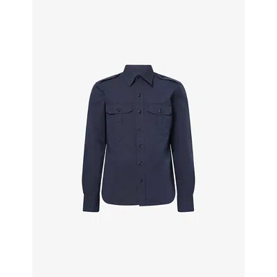 Mens Patch-pocket Long-sleeve Cotton-blend Shirt Navy In Gray