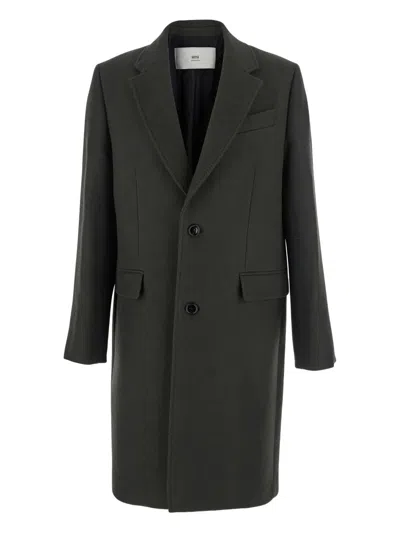 Ami Paris Men Green Single-breasted Coat With Peak Revers In Wool Man
