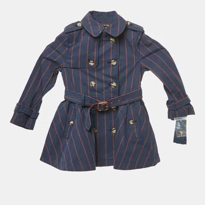 Pre-owned Kids Navy Blue Striped Cotton Trench Coat 4 Yrs