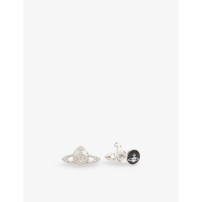 Mens Mini Bas Relief Silver-tone Brass And Crystal Cufflinks In Platinum / Crystal