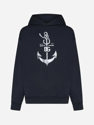 Printed Washed Cotton Jersey Hoodie In Blue Scurissimo