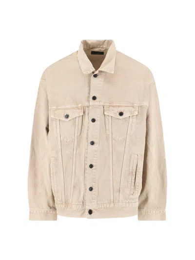 Beige Denim Jacket With Contrast Logo Embroidery In Gold