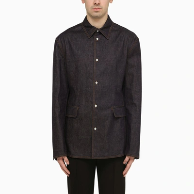 Mens Off White Embroidered Relaxed-fit Denim Jacket