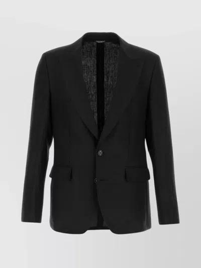 Linen Blazer With Front Pockets And Long Sleeves In Black