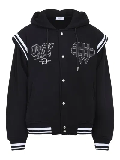 Fleece Varsity Jacket With Gothic Logo Patches In Black