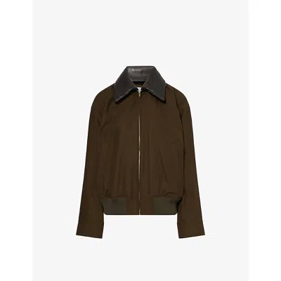 Mens Deep Moss Intrecciato-collar Cotton-twill Jacket In Brown