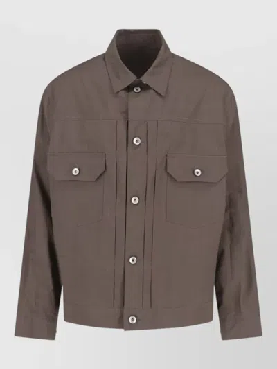Casual Jacket Adjustable Cuffs Flap Pockets In Brown