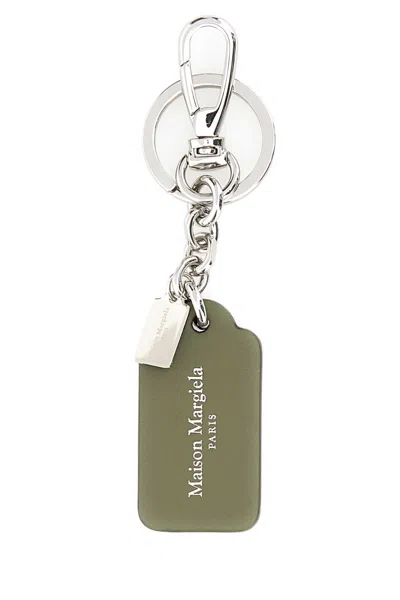 Olive Green Leather Keyring In Multi
