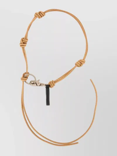 Leather Keychain With Adjustable Length And Knot In Brown
