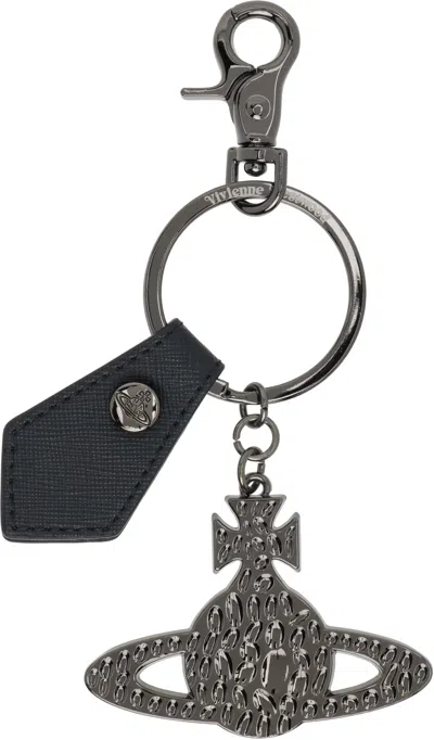 Black Saffiano Hammered Orb Keychain In Gray