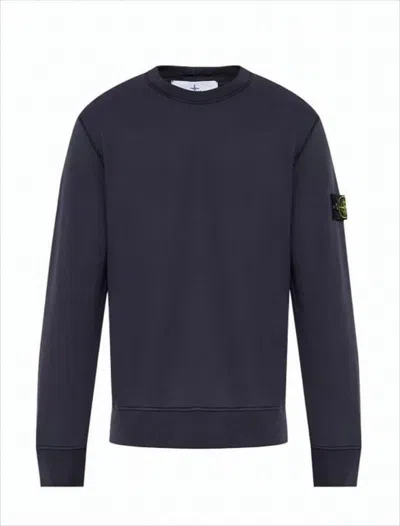 Cotton Jersey Crew Neck Sweatshirt Regular Fit In Blue