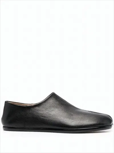 Refined Black Leather Loafers With Embossed Strap Detail In White