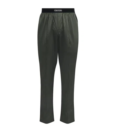 Gray Stretch Silk Satin Pyjama Pants In Brown