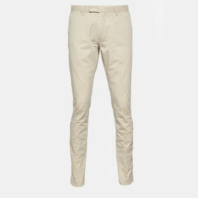 Pre-owned Beige Gabardine Stretch Slim Fit Pants L In Sand