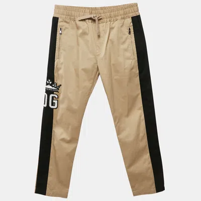 Pre-owned Kids Beige/black Logo Applique Gabardine Trousers 7/8 Yrs