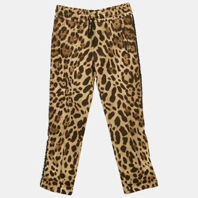 Pre-owned Kids Brown Leopard Print Cotton Track Pants 7/8 Yrs