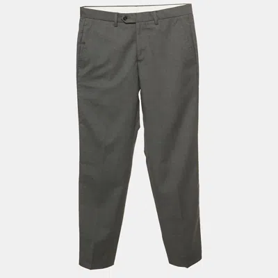 Pre-owned Grey Virgin Wool Straight Leg Trousers M