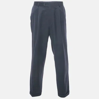 Pre-owned Midnight Blue Wool Regular Fit Trousers Xl