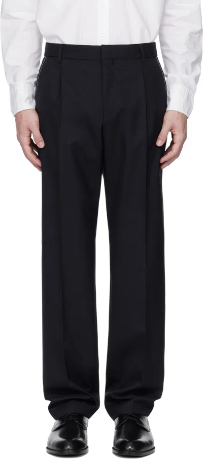 Straight Leg Virgin Wool Pants With Belt Loops In Black