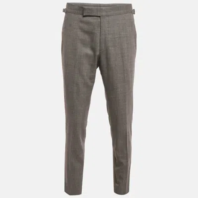 Pre-owned Dark Grey Check Pattern Wool Tailored Pants L