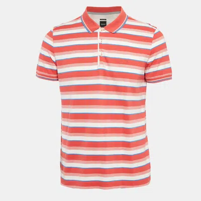 Pre-owned Red Stripe Pima Cotton Regular Fit Polo L