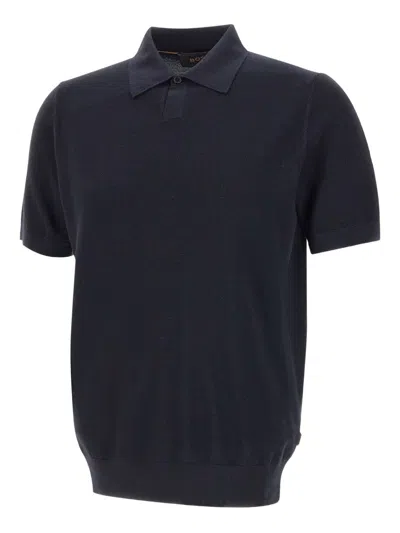 Refined Cotton Piquet Polo With Longer Back In Blue