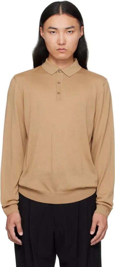 Tan Long-sleeved Virgin Wool Polo In Brown