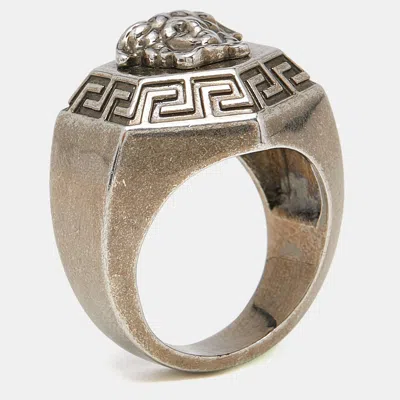 Pre-owned Gunmetal Tone Medusa Ring Size Eu 63