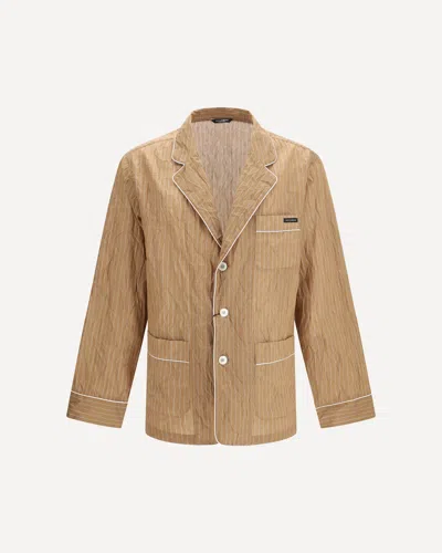 Vanity Shirt-style Robe In Froissé Striped Fabric In Brown