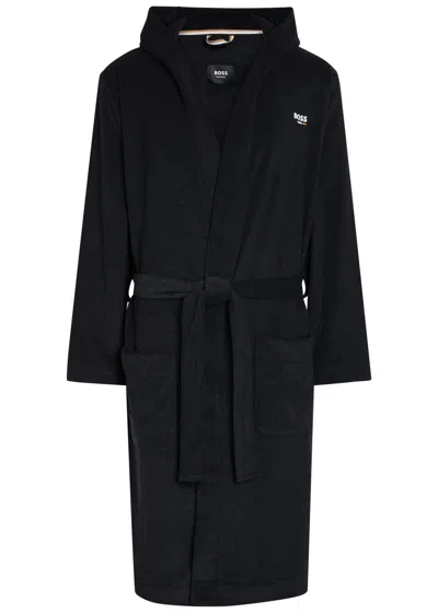 Mens Dark Slate Logo-embroidered Shawl-collar Cotton-terry Robe In Gray